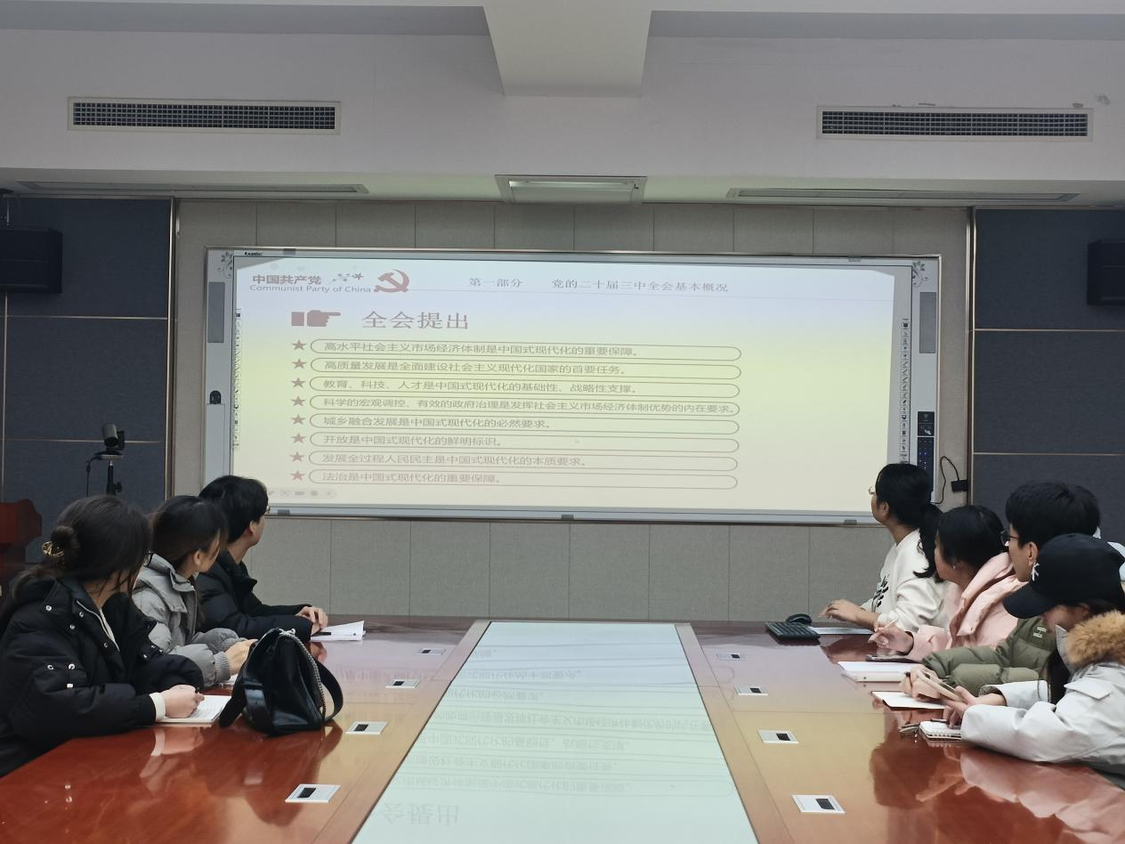 活动伊始,张钰扬详细阐述了党的二十届三中全会精神,并组织全体党员观看了习近平总书记在省部级主要领导干部学习贯彻党的二十届三中全会精神专题研讨班开班式上的重要讲话精神,党员们全神贯注,认真聆听每一个要点,仔细记录关键信息,深刻领会其中的精神实质,力求更好地把握全会精神内涵及要求,扎实提升个人素质,努力为中国特色社会主义事业贡献青春力量。