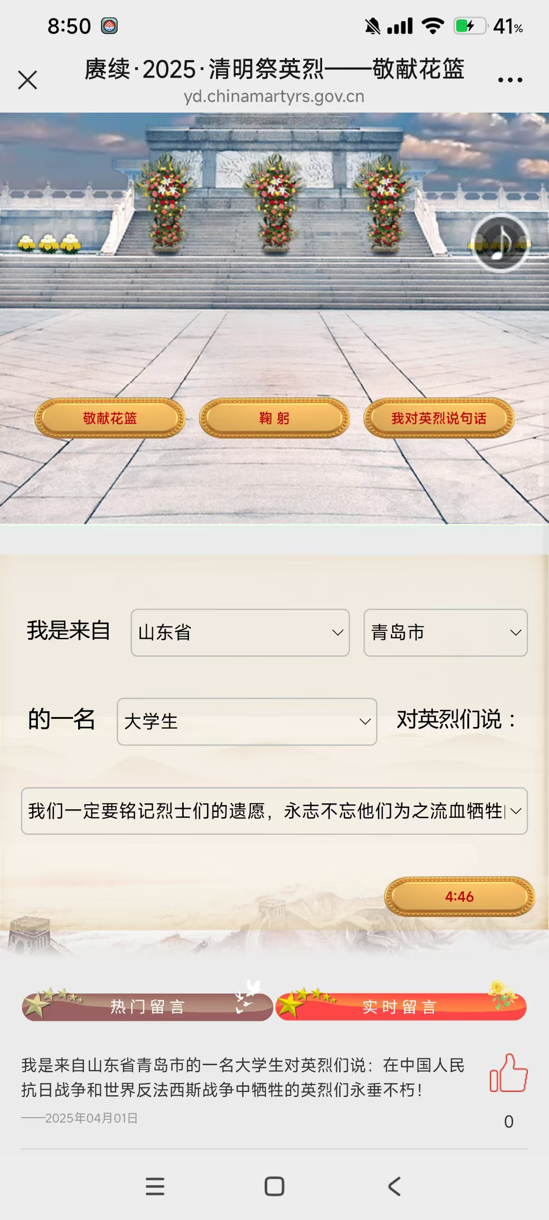 为传承革命传统、赓续红色血脉、厚植爱国情怀,推进党史学习教育常态化,4月2日,allwincity万象城官方网站第四(学生)党支部开展“赓续·2025·清明祭英烈”清明节线上祭扫主题党日活动。