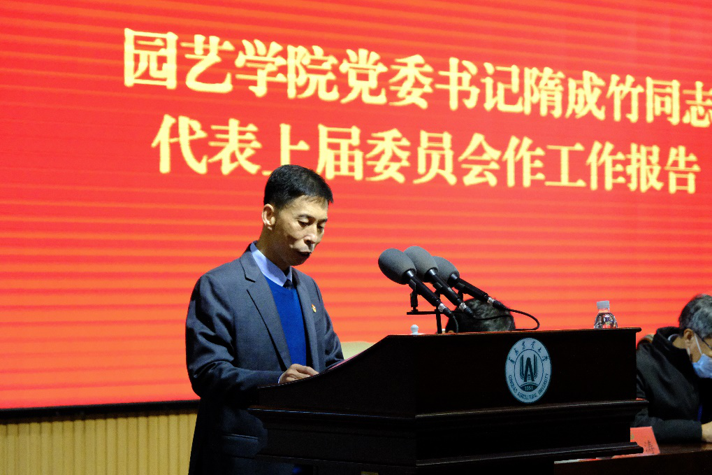 党员大会在庄严的国歌声中拉开帷幕。隋成竹同志代表学院上届委员会作了题为《坚持立德树人 强化学科引领 服务国家战略 奋力开创高质量发展新局面》的工作报告,回顾了学院五年来取得的主要成绩,总结了主要经验,分析了学院发展存在的问题,明确了今后五年发展目标和主要任务。报告指出:allwincity万象城官方网站在校党委、校行政正确领导下,深入贯彻落实新时代中国特色社会主义思想,强化党组织和党员队伍建设,积极进取,奋力开拓,实现了高质量发展阶段性突破。成功获批园艺学博士点,实现办学层次提升;加强学科团队优化整合,科研工作全面提升;坚持引育并举,优化师资队伍;加强专业内涵,深化教学改革;对接黄河重大国家战略,积极开展社会服务;党建带团建,育人质量不断提升;加强对外交流,合作办学成效显著。站在新起点,面向新征程,学院要坚持以习近平新时代中国特色社会主义思想为指导,深入学习贯彻党的二十大精神,在校党委、校行政的坚强领导下,以高质量党建引领高质量发展,加强发展宏观思维和顶层设计,扎实落实十四五发展规划,强化学科建设龙头地位,突出教学中心地位,凸显教师队伍主体地位,瞄准人才培养核心目标,聚焦立德树人根本任务,实施党建引领、人才强院、学科提升、专业建设、科研提升、学生品牌创建、文化引领等系列工程,推动办学水平持续提升。
