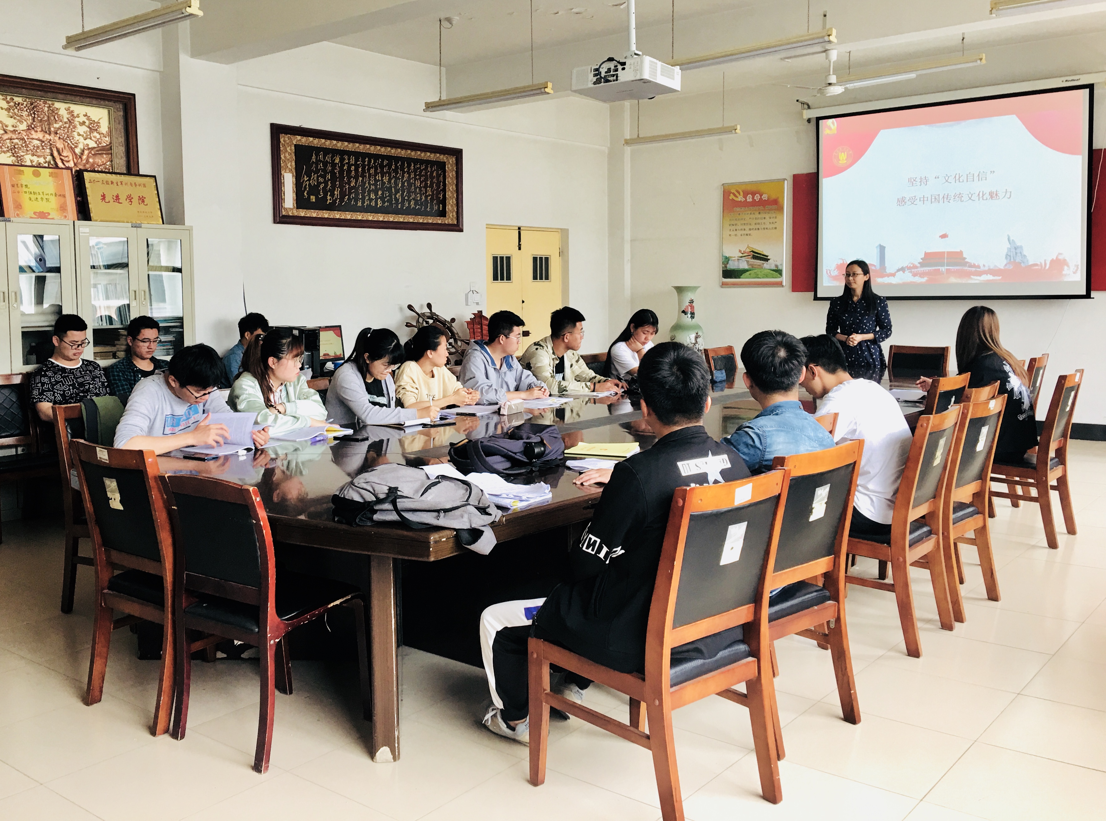 5月18日,allwincity万象城官方网站辅导员宋颖芳以《坚定文化自信,继承优秀传统文化》为题,在生物楼会议室向同学们讲授专题党课。文化自信不仅关系到自身文化的繁荣兴盛,而且决定着一个国家、一个民族的前途命运。我们的文化自信,很重要的来源就是中华民族优秀的传统文化。了解、学习、传播、继承优秀传统文化是当代大学生的责任与义务,作为入党积极分子和发展对象,更应该自觉增强传承和弘扬中华民族传统文化的责任感和使命感,坚定文化自信,继承弘扬优秀传统文化。