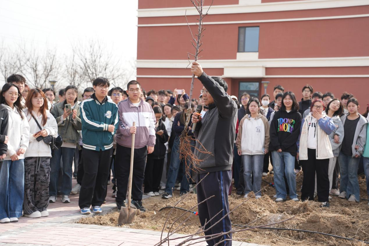 活动现场,果树学专家马春晖教授现场示范种植技术,详细讲解种植标准要求,指导师生开展苹果、梨、桃、樱桃等9类园艺作物700余株果树的科学栽植。师生党员3人成组,挥锹培土、扶苗浇水,在专业实践中深化立德树人的使命担当。此外,活动现场还进行了师生党员果树挂牌认领活动,由各师生党员进行树苗后续管护任务。