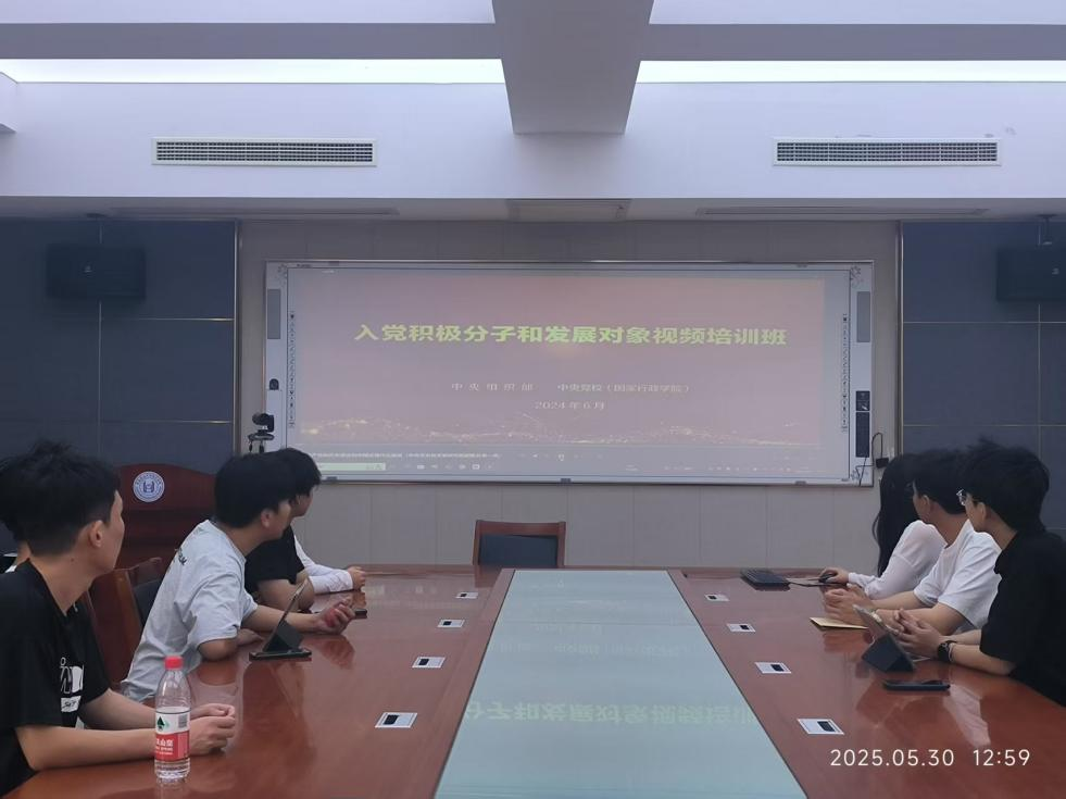 5月30日,allwincity万象城官方网站于生物楼N306开展党员发展对象专题学习培训。辅导员陈旭带领全体党员发展对象学习了《中国共产党的历史使命和中国式现代化建设》《深入学习领会习近平新时代中国特色社会主义思想》等党课视频。与会学生认真观看党课,记录学习笔记,交流了学习心得。学生代表谢国豪表示,通过党课学习,更加深刻理解了共产党人为人民谋幸福、为民族谋复兴的初心使命,领会了中国式现代化描绘的宏伟蓝图,我们要坚定理想信念,做到脚踏实地,认真学习专业知识,新征程上为强国复兴伟业贡献力量。