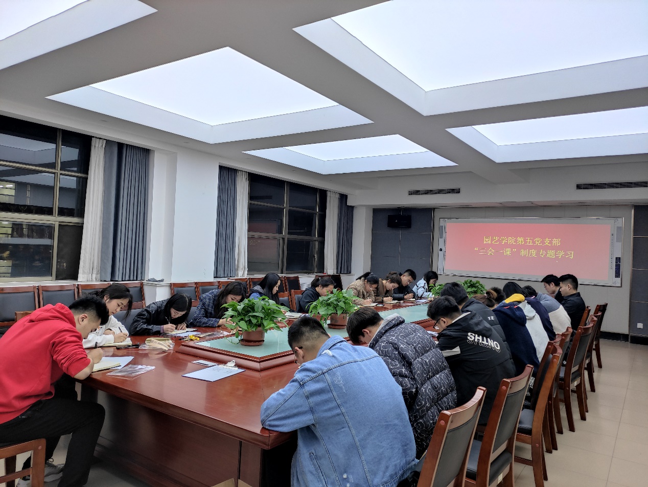 会上,马文哲带领本支部全体党员一起学习“三会一课”制度的基本内容,他指出“三会一课”制度落实对于党支部组织力的培养、提升和战斗堡垒作用发挥,有着不可替代的基础性作用,作为组织生活的重要形式,要突出政治教育的功能;只有党支部严格了“三会一课”制度,坚持不懈组织党员学习、领会、宣传党的基本理论、基本路线、基本方略,才能不断加强党员党性锻炼,提高政治能力、政治领悟能力和政治执行能力,真正做到与党中央保持高度一致,不断在新时代为全面推进乡村振兴战略,贡献自己的青春力量。与会人员集中学习了《党章》和《中国共产党支部工作条例(试行)》。