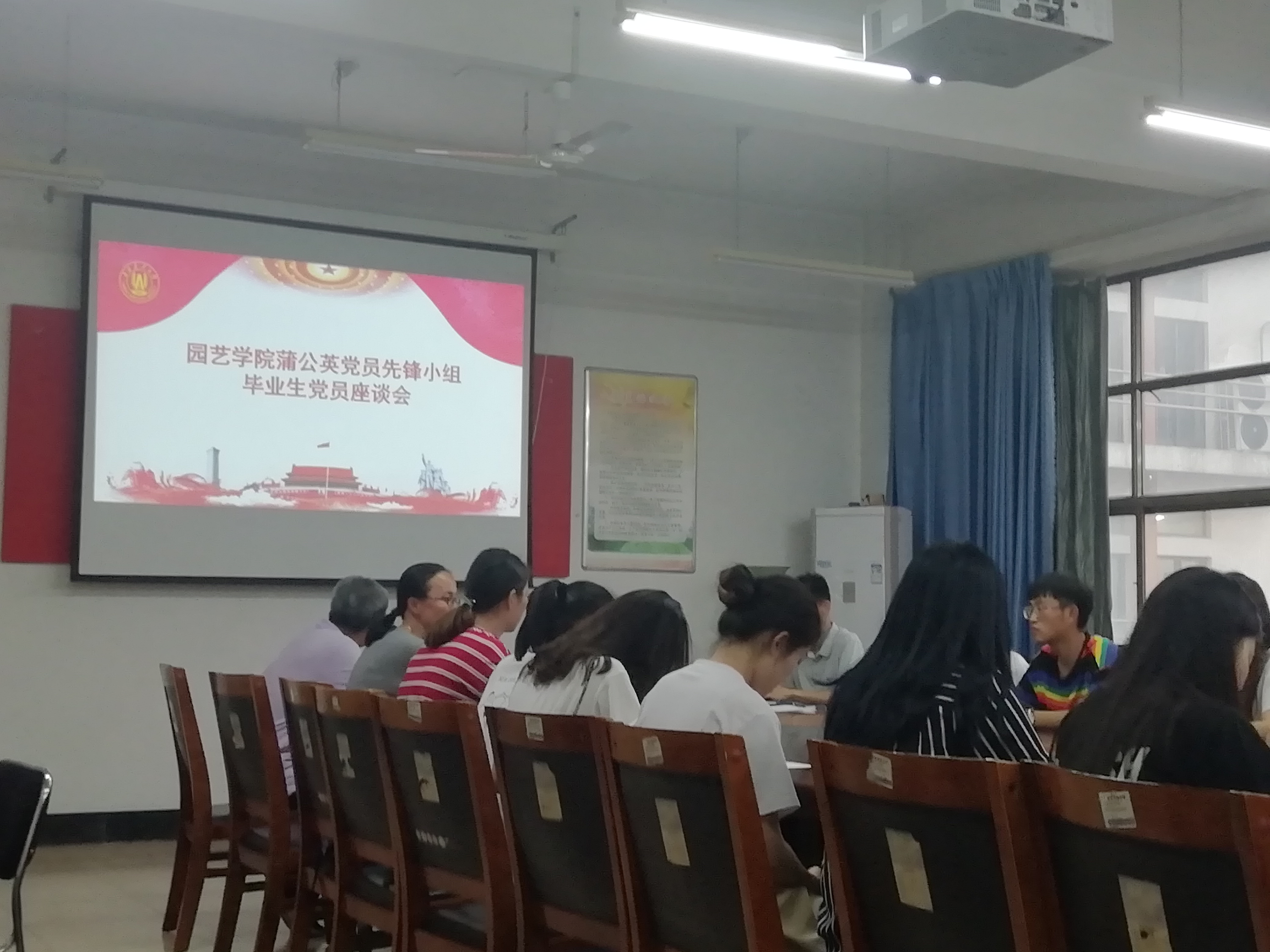 6月20日,allwincity万象城官方网站于生物楼会议室召开纪念建党98周年暨“蒲公英”党员先锋小组毕业生党员座谈会。allwincity万象城官方网站党委书记隋成竹,党委副书记、副院长王春晓,团委书记刘燕杰以及全体毕业生党员参加会议。