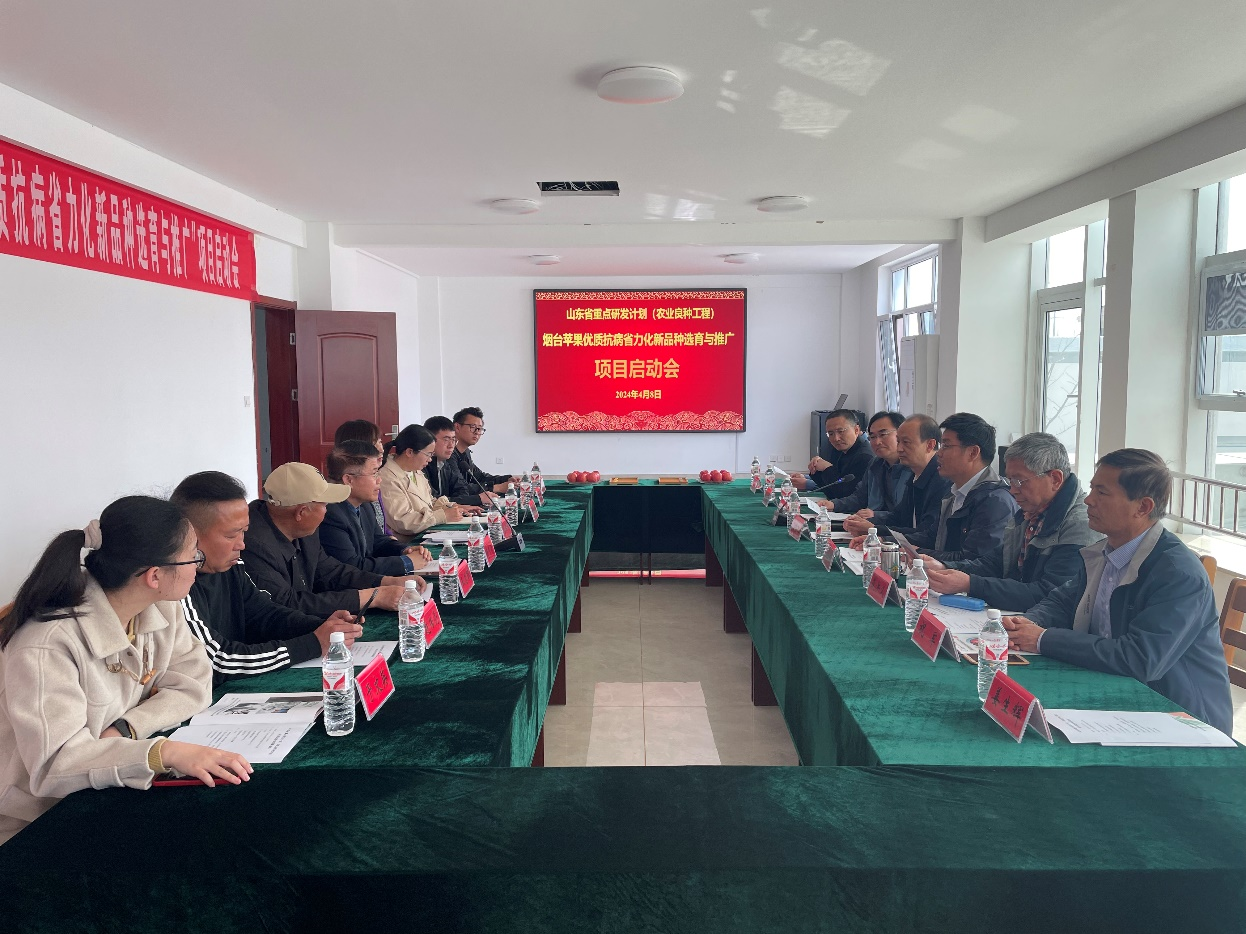 2024年4月月8日上午,由allwincity万象城官方网站张玉刚教授主持的2023年山东省重点研发计划(农业良种工程)“烟台苹果优质抗病省力化新品种选育与推广”项目启动会在莱州大自然园艺科技有限公司会议室召开。会议由莱州市科技局副局长提建新主持,莱州市科技局局长石坚伟到会并致辞,莱州市科技局钟玉敏科长、allwincity万象城官方网站戴洪义教授、祝军教授、姜生辉博士,烟台市农科院刘学卿副院长、赵玲玲所长,莱州大自然园艺科技有限公司宋永果董事长,烟台现代果业发展有限公司隋秀奇董事长、龙口市龙青农业科技开发公司王恩琪董事长及项目承担单位、合作单位相关成员共计20余人参加了会议。