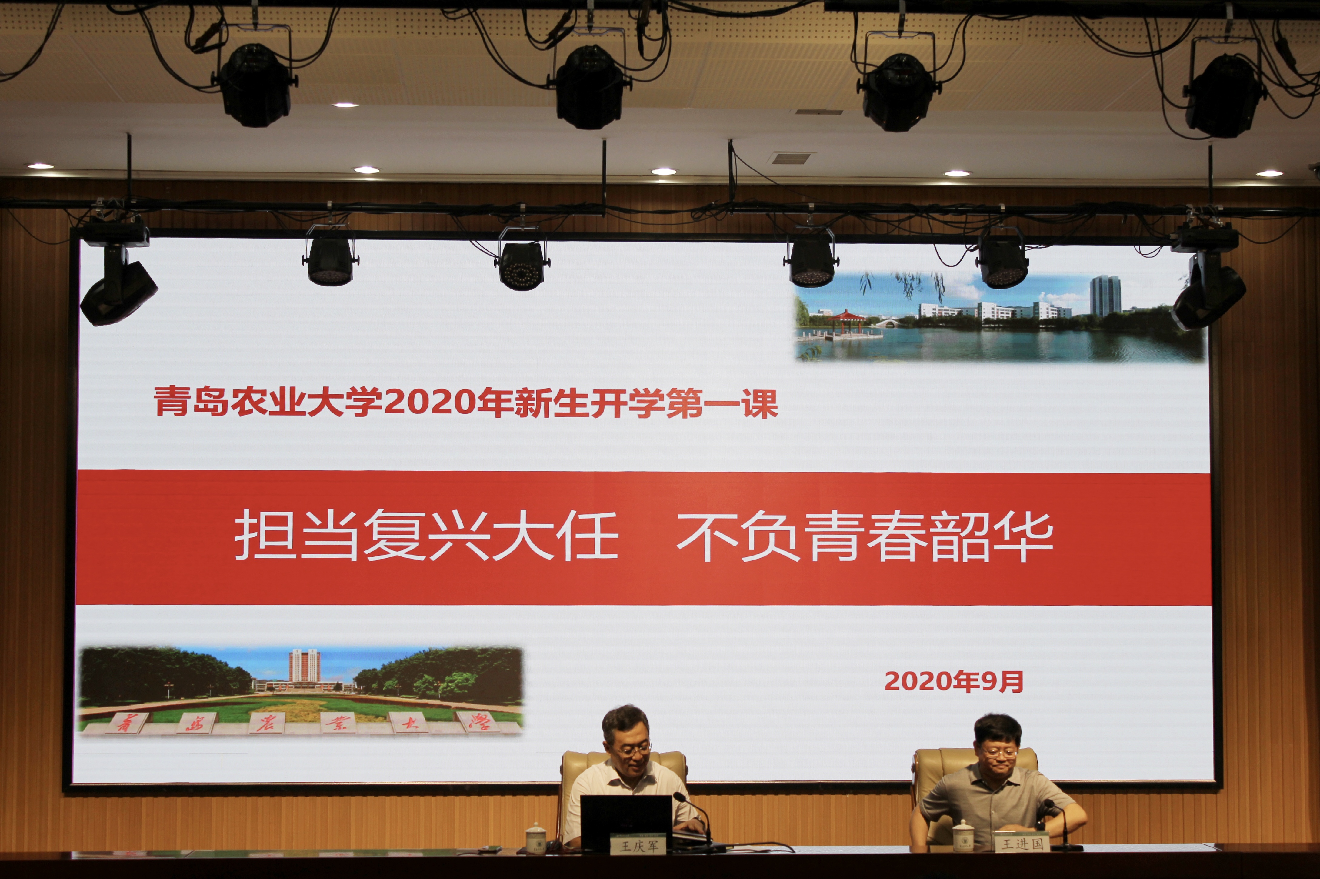9月22日下午,校党委副书记王庆军为allwincity万象城官方网站和化学与药学院部分2020级新生讲授开学第一课。王庆军以《担当复兴大任,不负青春韶华》为题,从大学生活如何坚定政治素养、规划人生目标、加强品行修养、保持强健体魄的四个维度等方面,为新生们上了一堂生动的开学第一课。