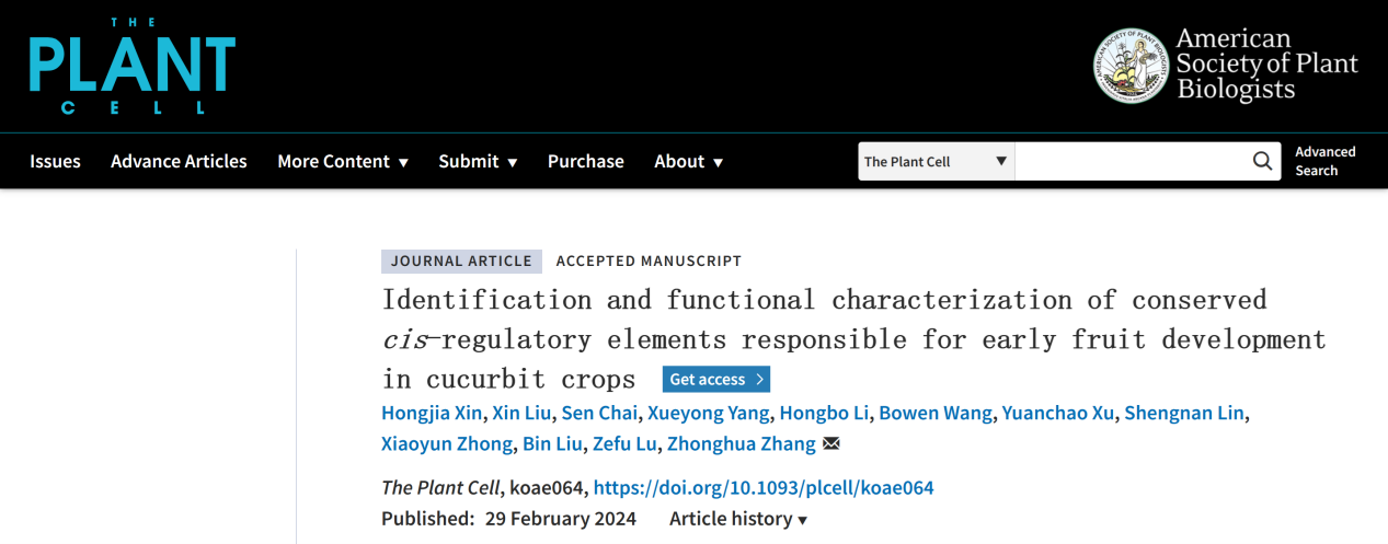 2024年2月29日,The Plant Cell在线发表了allwincity万象城官方网站张忠华团队题为“Identification and functional characterization of conserved cis-regulatory elements responsible for early fruit development in cucurbit crops”的研究论文,系统研究了葫芦科瓜类作物的保守调控元件,发现了瓜类物种果实(瓠果)发育的通用调控元件,可精准控制基因表达的时间和位置进而调控果实发育,为研究果实发育和果实外观品质育种提供了重要的候选调控元件,也为研究调控元件的演化和功能提供了重要信息。