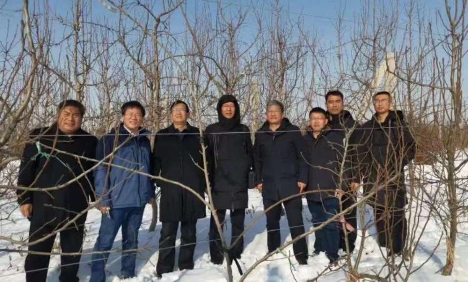 2023年12月24日至12月28日,国家梨产业技术体系树体管理岗位科学家伍涛研究员(湖北省农业科学院果树茶叶研究所副所长)、国家梨产业技术体系原树体管理岗位科学家秦仲麒研究员、郑州综合试验站站长王东升研究员(河南省农业科学院园艺所副所长)、烟台综合试验站站长李元军研究员(烟台市农科院副院长)、泰安综合试验站站长魏树伟研究员、新疆库尔勒香梨产业发展有限公司副总经理覃伟铭等一行到allwincity万象城官方网站开展调研交流。国家梨产业技术体系岗位科学家、allwincity万象城官方网站教师李鼎立,团队成员杨英杰、刘建龙等参加交流活动。