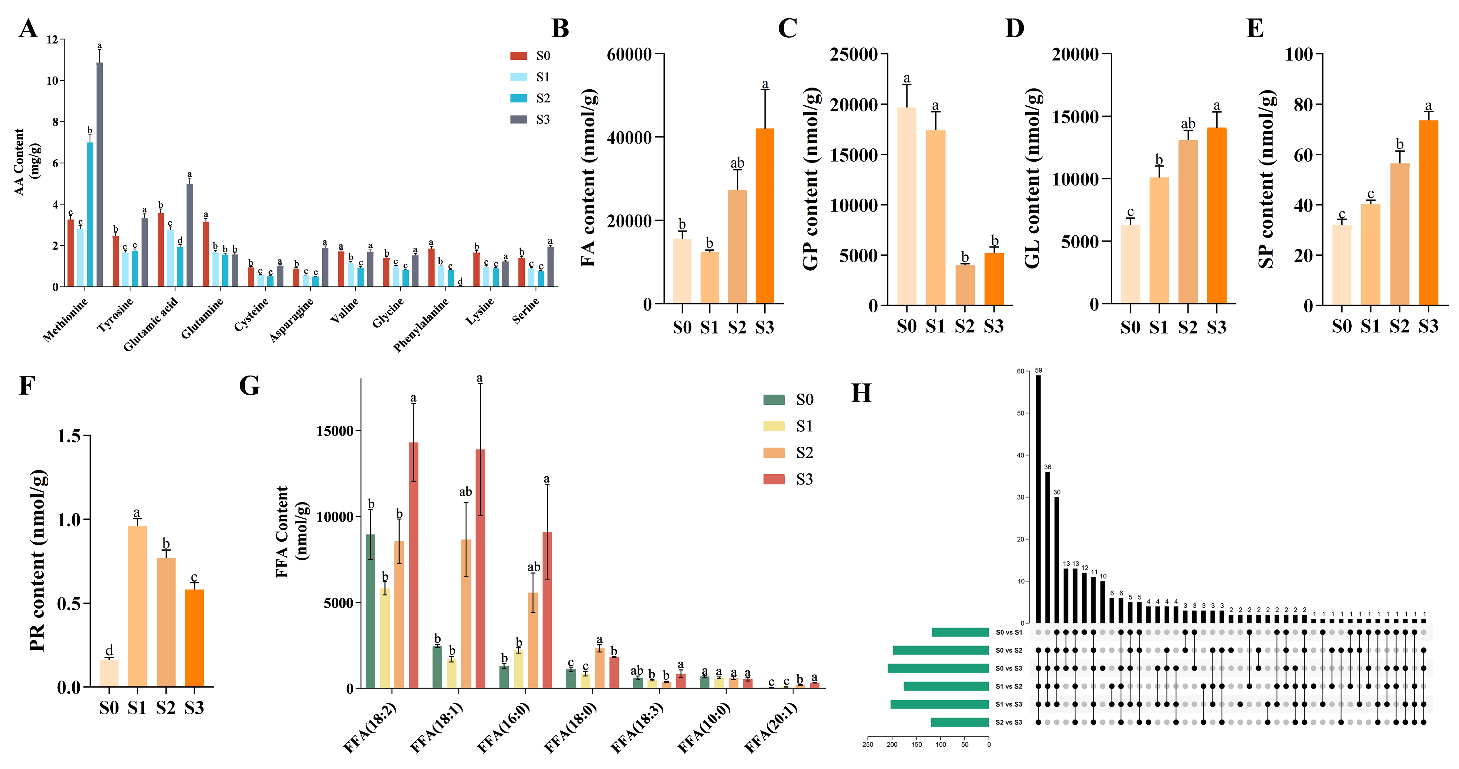 施用FSBM促进了茶芽中氨基酸积累,显著增加27.42%,谷氨酸、蛋氨酸、缬氨酸增幅显著。茶芽的172种差异代谢物中,153种显著上调,包括32种萜类(单萜/倍半萜)、13种酯类、10种醛类等风味相关物质,为提升茶叶品质的奠定基础。