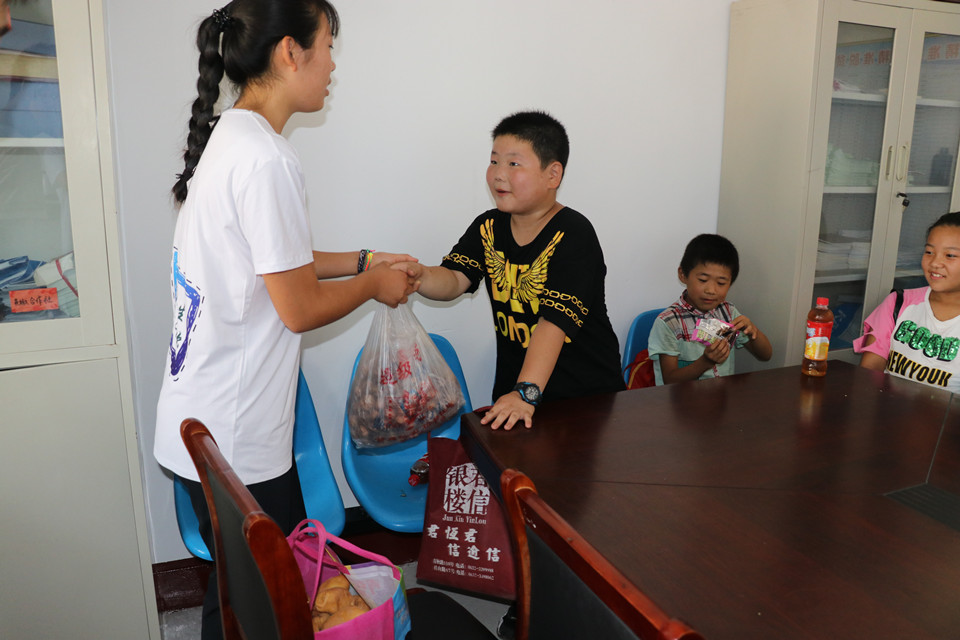在招生的第一天,许多家长早早地带着小朋友来到文化大院报到,“我们孩子从前年就参加你们的暑期学习,回来以后性格开朗了不少,去年因为有事耽误了,后悔好一阵,幸亏今年赶上了。”还有的孩子一边把自家种的蔬菜放到队员手中,一边连声说“老师,你们辛苦了”。