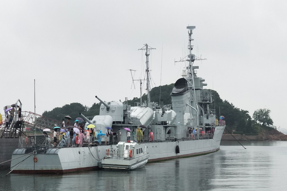 最让我们感到震撼的是停泊在岸边的“鞍山”号驱逐舰和“济南”号导弹驱逐舰,看着浩浩荡荡的两艘战舰,队员们按耐不住激动的心情,登上军舰,近距离观察它们。“鞍山”号性能优良、曾为保卫祖国做过重大贡献,是一条具有光荣战绩的军舰,在我国的海军历史上留下了浓墨重彩的一笔。登上战舰,领略的又是另一番风景。不少游客在军舰驻足,既有正在向自己的家人讲述着战舰历史的老人,也有带着孩子感受海军精神、上一堂生动的历史课的家长。