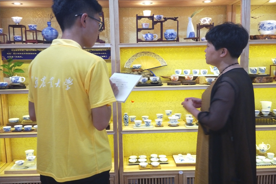 参观过程中,队员们发现了一个画着小猪佩奇的青花瓷杯。传统的手法,传统的工艺,结合的却是现代元素。“什么叫创新?这就是创新。”于经理对队员们说。“如今不少茶室茶馆,都会在室内播放一些或古典或禅意的音乐,比较常见的乐器是古筝跟古琴。除了音乐外,有的还加入了香道,花道等等,彼此结合,才成就了当今的茶道。他告诉队员,当下我们并不缺少创新,而是缺少对文化真正的传承。