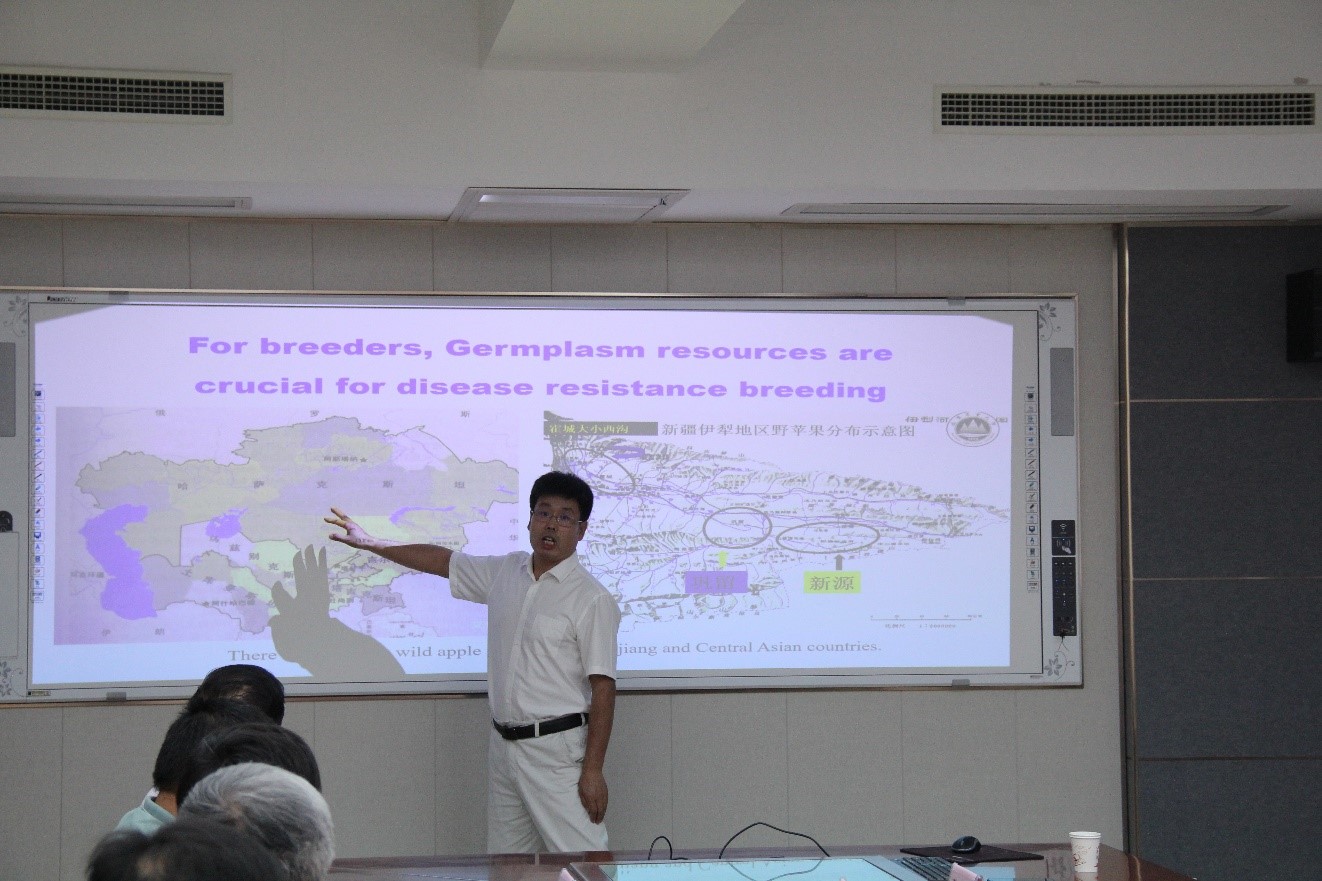 乌兹别克斯坦科学院遗传学和植物实验生物学研究所胡尔希德·图拉库洛夫(Khurshid S. Turakulov)副所长汇报了国际创新合作项目“赛威士野苹果及其资源收集对乌兹别克斯坦-中国苹果种质资源合作研究的重要性”课题研究进展情况,介绍了乌兹别克斯坦野苹果分布以及面临的生态环境胁迫,提出了解决生态环境胁迫的建议,表达了拓展与加深与我校科研交流与合作的愿望,安排了下一步合作项目的工作计划。安瓦尔·谢林别托夫(Anvar G. Sherimbetov)博士分享了在我校相关实验室开展科研合作的经验体会,对我校良好的苹果生物学研究条件和完善的苹果试验推广基地以及突出的科研成果表示赞赏。