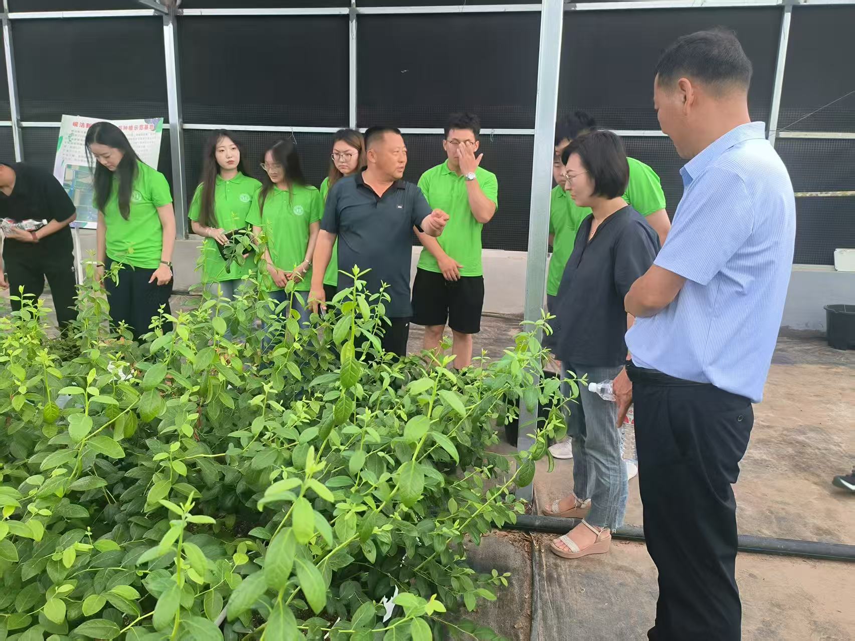 莱西市院上镇小河子村党支部书记张吉玉对实践团的到来表示热烈欢迎,针对基质蓝莓的智能化种植流程进行了细致讲解。当走进水肥一体化智能控制室时,实践团成员们纷纷被眼前的智能科技所震撼——从抽取井水、层层过滤、蓄水存水,到精准配比肥料,整个过程井然有序,而最终的灌溉操作竟能通过手机一键完成,便捷高效的程度让大家赞叹不已,真切感受到了科技为农业生产带来的革新。在交流中,张书记详细介绍了科技小院的发展成果。他提到,2018年通过青岛市科技发展计划项目建成覆盖面积1000平米现代化葡萄日光温室,采用集约密植、单氰胺破眠及平茬修剪技术,实现了一年结果,二年丰产;该栽培模式实现了结果当年亩产值8万元,第二年产值12万元的高产高效栽培目标,充分彰显了科技赋能农业的强劲动力。