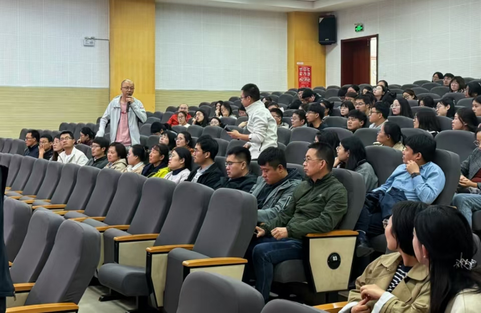 交流环节中,与会师生就实验细节、团队管理等方面进行发言提问。