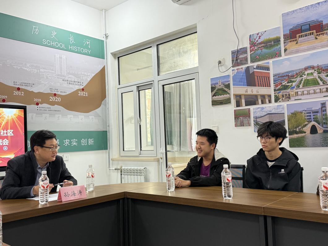 座谈会上,孙海涛全面关切地询问了大家入学以来的整体适应状况。他从专业学习、生活保障到未来发展等方面与同学们进行了深入交流。他细致地询问大家“能否跟上课程进度”、“食堂伙食是否合口味”、“宿舍生活是否便利”,也格外关心同学们“是否找到了志同道合的朋友”、“对未来的大学生活有何期待”。这份无微不至的关怀,让在场新生深深感受到了学院的温暖,学生代表畅所欲言,既分享了初入大学的感受与收获,也真诚提出了现阶段遇到的困惑与建议。孙海涛认真倾听、详细记录学生代表的意见,现场就部分问题进行了现场回应与细致解答。