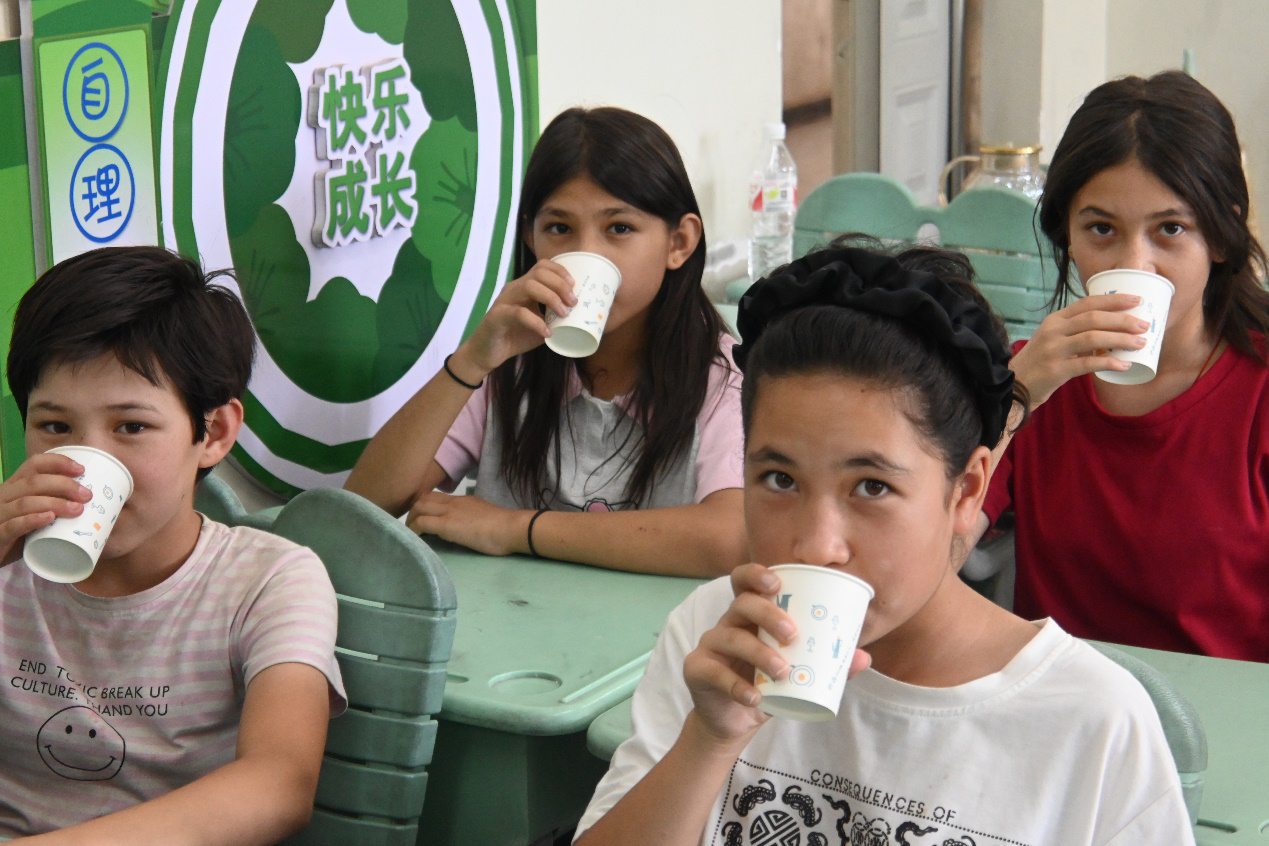 图为小学生们在课间主动冲茶喝 张钰扬 供图