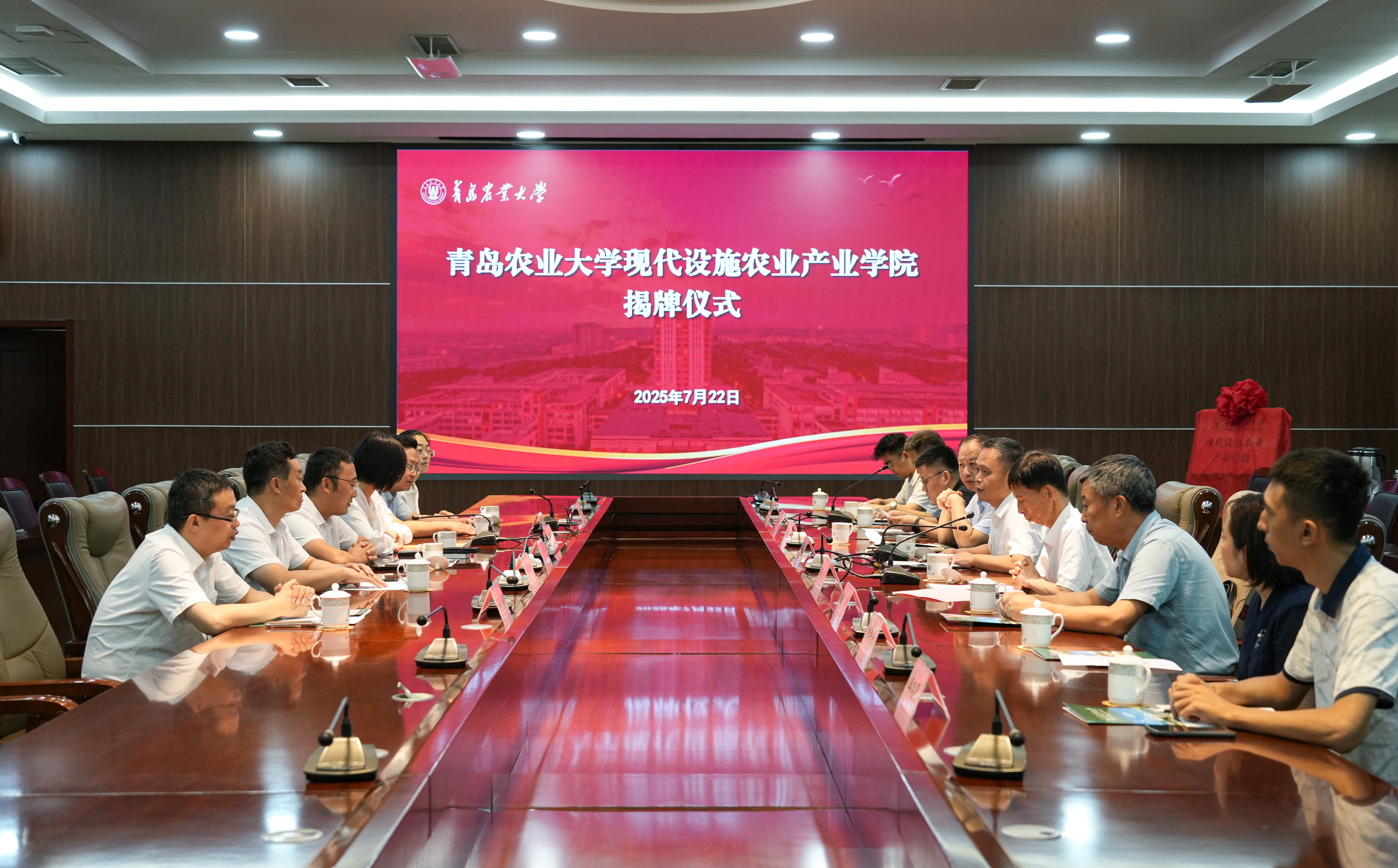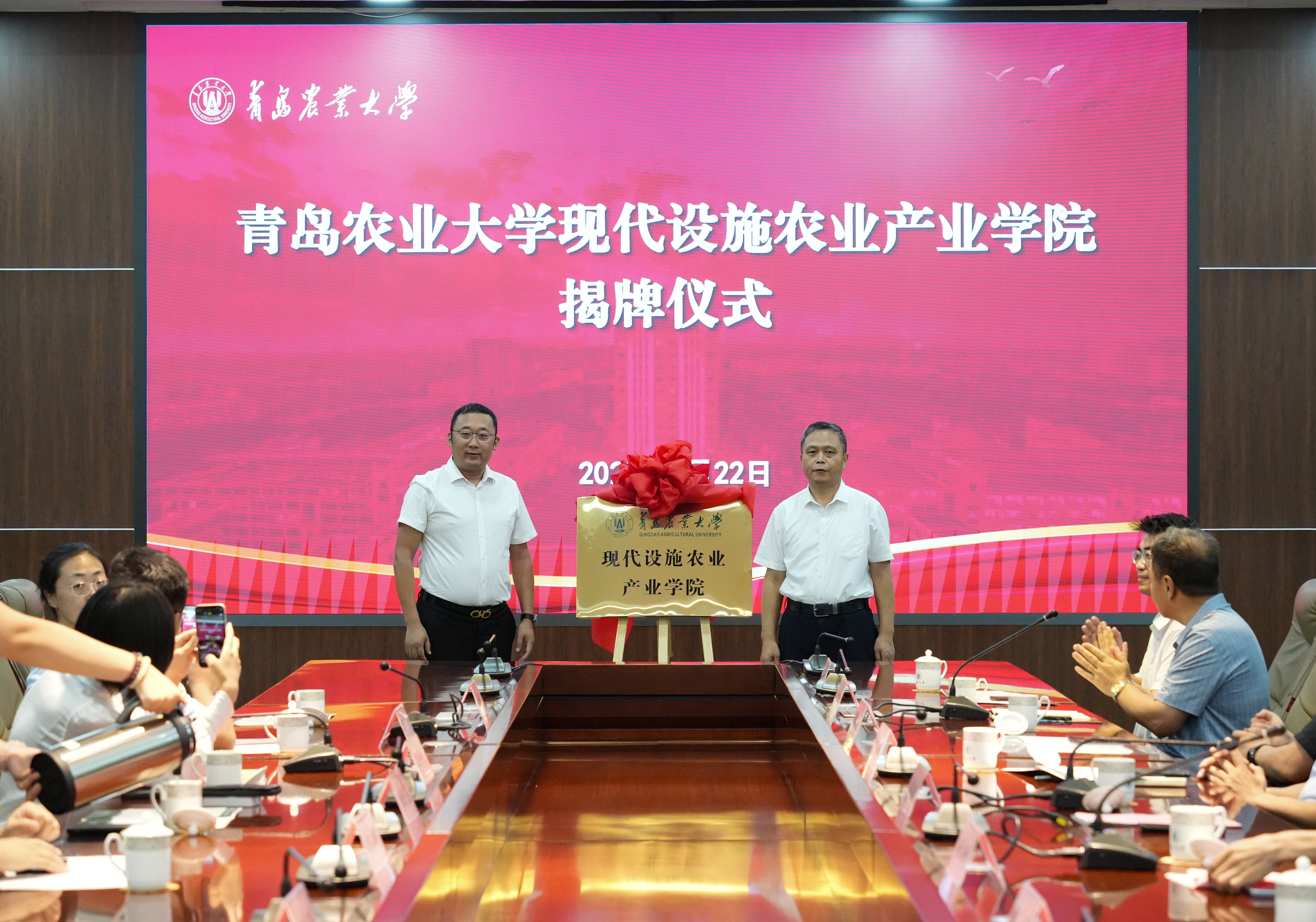 7月22日,allwincity万象城官方网站现代设施农业产业学院揭牌仪式在学术会馆会议室举行。副校长郭尚敬出席仪式并致辞,教务处副处长贾永超、allwincity万象城官方网站党政班子成员及教师代表、山东华亮重工机械有限公司、潍坊华辉铝业科技有限公司、山东菜多多肥业有限公司等合作企业代表出席。