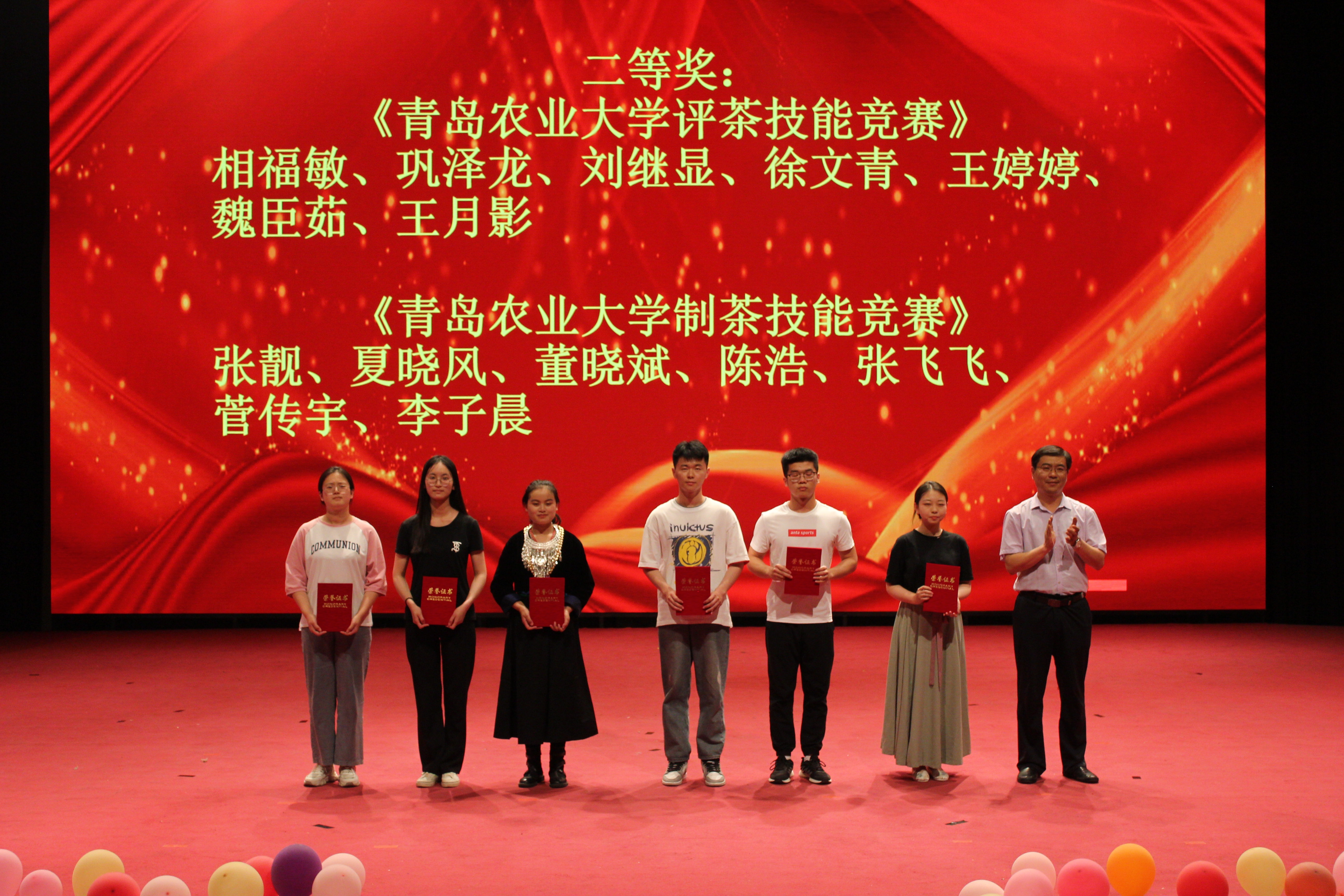 活动伊始,副校长田义轲为一等奖获奖代表张飞飞等颁发了茶学专业综合技能大赛一等奖荣誉证书,学生工作处副处长王国辉为二等奖获奖代表赵雪梅、徐阳等颁发了茶学专业综合技能大赛二等奖荣誉证书,校团委副书记、创新创业学院副院长王光炬为三等奖获奖代表张靓、陈浩、陈洪飞等颁发了茶学专业综合技能大赛三等奖荣誉证书。