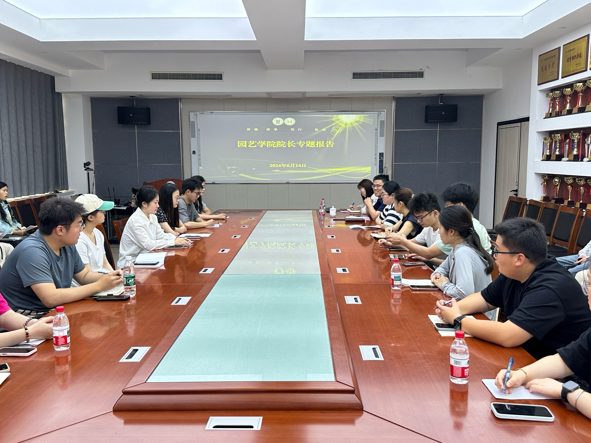 张忠华教授为毕业生作专题报告,他详细回顾了近年来学院在教学、科研、社会服务等方面取得的显著成就,从客观认识自己的成长经历、养成成长型思维模式、终身学习以及合作共赢四个维度对同学们提出了殷切期望。他鼓励大家要积极适应社会的变化,将所学知识与实践相结合,为园艺事业的发展贡献自己的力量。张忠华教授还分享了自己的求学经历和奋斗历程,为同学们未来的职业规划提供了宝贵的经验。