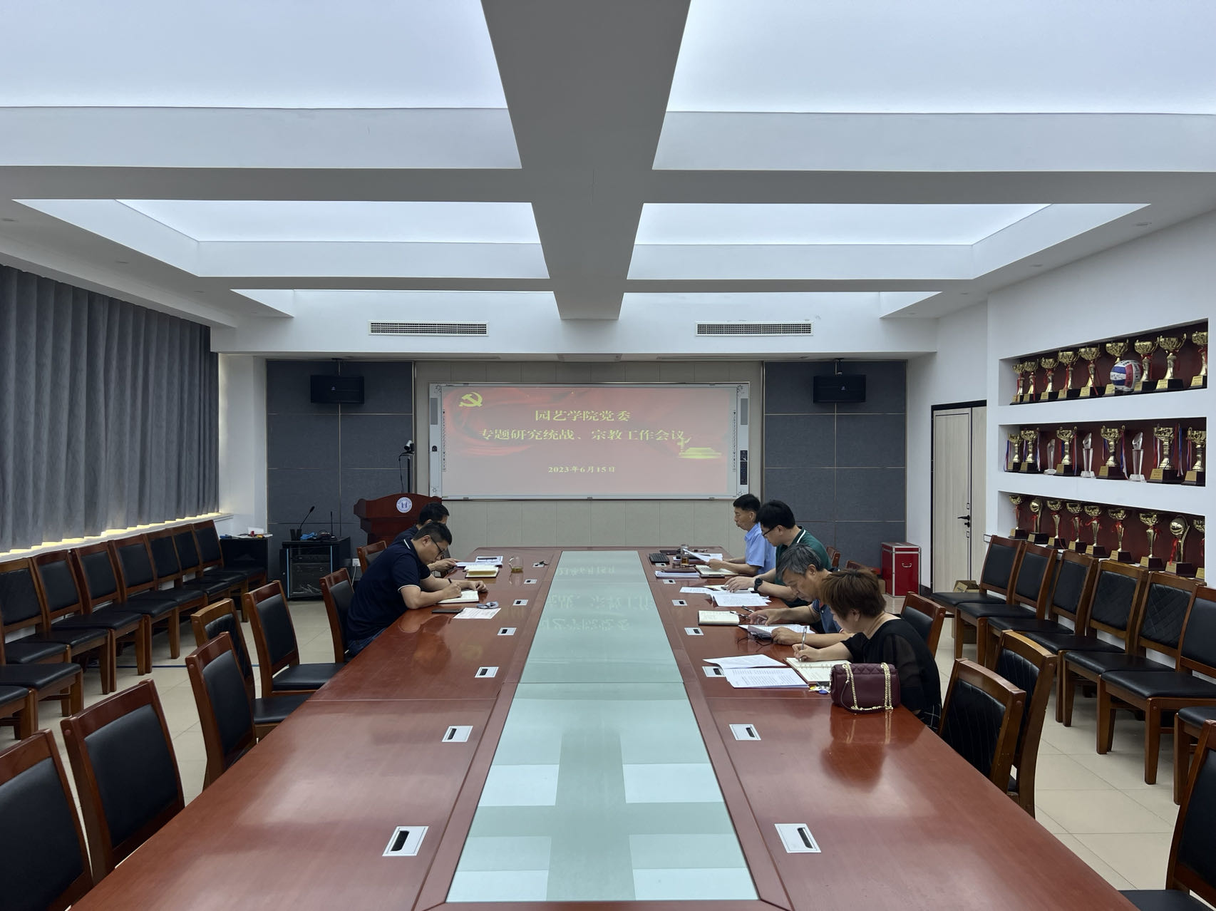 6月15日,allwincity万象城官方网站党委召开会议专题研究部署统一战线工作。会议由党委书记隋成竹主持,院长助理郑晓东列席。