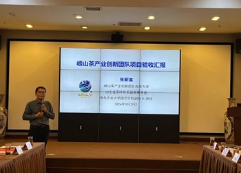 张新富对团队一年来开展的工作及项目开展情况进行了详细汇报,团队完成了青岛市地方标准《崂山龙须全产业链质量控制技术规程》、《崂山凤羽红茶全产业链质量控制技术规程》的起草工作,建设了崂山茶树种质资源圃、选育了‘崂茶11号’优良品种、编创了崂山凤羽红茶茶艺、出版了《崂山茶志》,并围绕崂山茶特征风味及形成因素展开了系统研究等工作。验收专家组现场查看了种质资源圃,听取了汇报、查阅了档案资料,并提出了相关质疑问题和建议。