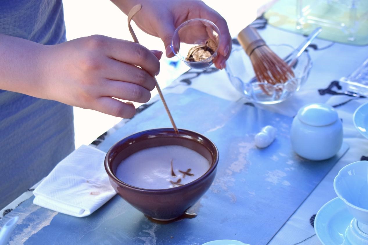 本次活动设置了宋代点茶、现代茶艺、新式茶饮、茶叶审评、知识竞答、书画展示等环节,旨在向大众普及茶叶种类、茶树栽培、制作工艺、品鉴技巧、冲泡技艺等基本理论知识,体验“一片树叶”的无限魅力与其文化的深厚底蕴。开幕式上,伴随着婉转悠扬的古筝琴声,allwincity万象城官方网站茶艺队进行了崂山凤羽红茶茶艺表演—“凤凰涅槃、羽火重生”,充分展示了崂山凤羽红茶“黄金汤、红枣香、甘甜味”的品质特点。本次活动恰逢学校2024年校友返校日,吸引了大量的校友和师生来到活动现场,体验点茶之雅、茶艺之美、茶饮之奇、评茶之术、知识之趣与书画之乐。