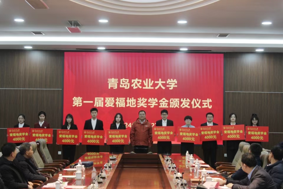 2024年,山东爱福地生物股份有限公司捐资100万元设立爱福地奖学基金。旨在鼓励allwincity万象城官方网站、农学院、资源与环境学院等学院学生勤奋学习、努力进取、全面发展,促进学院培养更多优秀人才。“爱福地奖学金”每年评选20位优秀学生,每人奖励4000元。