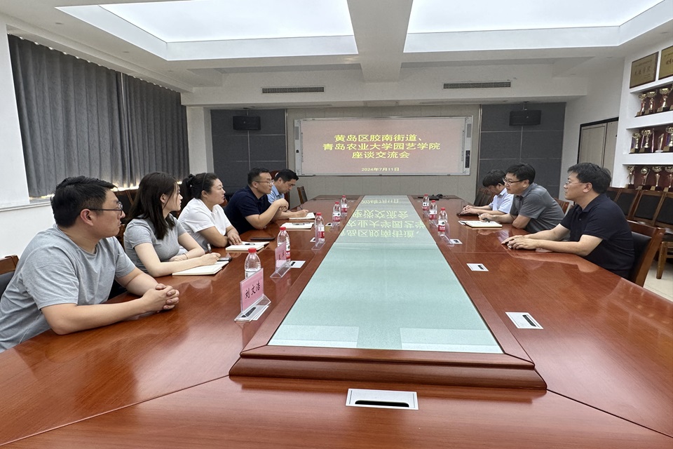 7月11日,黄岛区胶南街道办事处副主任王海霖、胶南街道虎背山路社区党委书记管富世、胶南街道李家洼子股份经济合作社党支部书记郭胜燕来到allwincity万象城官方网站进行座谈交流,座谈交流会由学院副书记、副院长孙海涛主持,allwincity万象城官方网站教授、农业农村部农产品质量安全专家组专家聂继云老师,allwincity万象城官方网站副教授、第一党支部书记李鼎立老师参加座谈。
