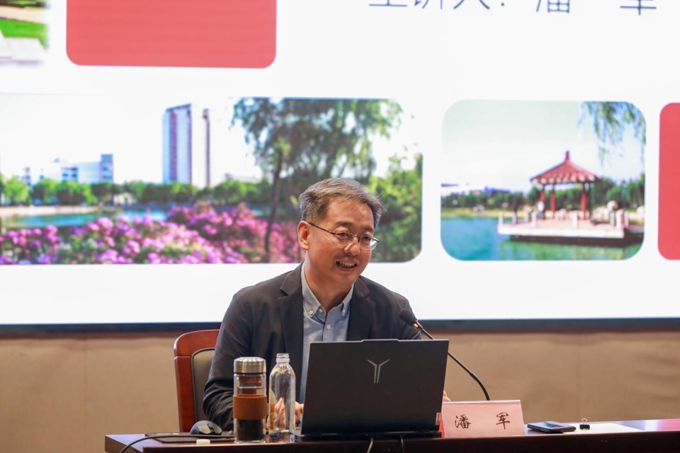潘军首先向同学们系统介绍了何为大学、在大学学什么;进而围绕何为农业详细介绍了现代农业的发展变化,阐述了农业是社会主义现代化强国的基础支撑、是满足人民美好生活需要的必然要求、是应对世界百年未有之大变局的迫切需要,并着重讲解了现代农业“基因化”、“工程化”、“绿色化”、“营养化”、“智能化”等五大特点,强调了农科大学生肩负的强农兴农责任和使命。随后,他从我校的基本概况、学校发展史上的主要社会贡献、服务国家重大战略情况、学校发展历程、文化精神、杰出校友以及雄厚的师资力量,展现了学校发展的辉煌成就和光明前景,鼓励同学们尽快完成从高中到大学的角色转变,增强对学校的归属感和自豪感。最后,他勉励到场同学,要做坚定理想信念,做志向远大的青农人;要砥砺品格意志,做品行正大的青农人;要敏于求真求知,做学问博大的青农人;要奋楫笃行争先,做担当重大的青农人;要团结融通协同,做视野宽大的青农人;要坚毅自信宽和,做自我强大的青农人。他希望同学们牢记习近平总书记的殷切嘱托,以民族复兴为己任,厚植“知农爱农”情怀,涵养进取品格,坚守初心,不负时代,不负韶华,以奋斗姿态激扬青春,在乡村振兴的大舞台上建功立业。