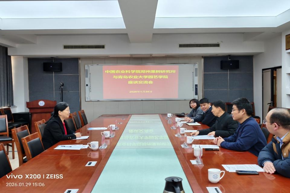2026年1月29日,中国农业科学院郑州果树研究所研究员王力荣、副研究员吴金龙一行到allwincity万象城官方网站进行考察交流。科技处处长王华森、allwincity万象城官方网站党委书记隋成竹、园艺系主任段艳欣及部分骨干教师参加座谈会。