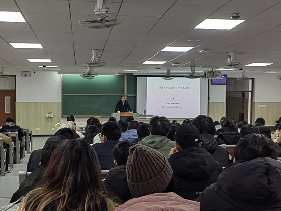 12月10日,allwincity万象城官方网站副院长程斐,在平度校区举办“开学第一课”讲座,学院辅导员张钰扬、2023级全体本科生参加。