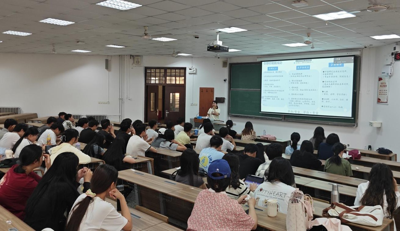 活动伊始,张钰扬阐述了本次活动的初衷和意义,强调了科学规划发展路径、借鉴学长学姐经验的重要性,为活动奠定了务实而温馨的基调。韩明芮今年以401分的好成绩上岸吉林大学,她在分享中深入浅出地讲解了“精准定位”“五步择校法”“全面检索法”等实用的择校策略,并特别强调了心态在考试中的重要性。她引用“悟已往之不谏,知来者之可追”的古语,鼓励同学们及时规划学业,理性面对考研挑战,并向老师和学弟学妹们表达了诚挚的祝福。