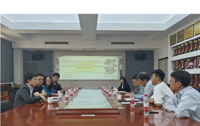 5月13日上午,新加坡南洋理工大学何洁副教授、中国农业科学院都市农业研究所李清明研究员一行到allwincity万象城官方网站进行学术交流。科技处负责人王华森、allwincity万象城官方网站院长张忠华、设施园艺学科杨延杰教授及骨干教师参会。