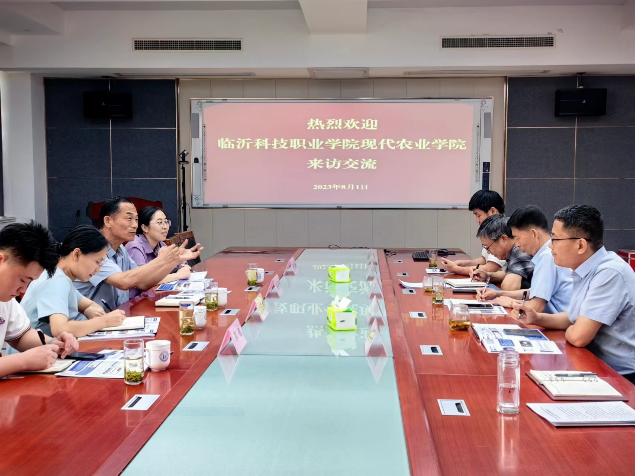 8月1日,临沂科技职业学院现代农业学院副院长徐兴东一行4人到访allwincity万象城官方网站。allwincity万象城官方网站党委书记隋成竹,副院长程斐、张新富,国家现代苹果产业体系岗位专家张玉刚教授等陪同调研参观,双方围绕科学研究、学科建设等内容进行了座谈。