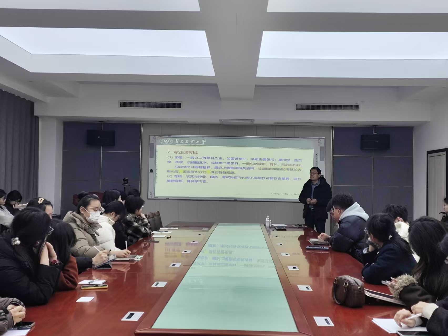 张新富老师结合今年的考研形式以及同学们的需求,从今年学院考研情况、招生划区、研究生招生、研究生复试、同学们比较关心的问题、工作与就业六个方面进行了详细讲解,分享了一些复试技巧、获取调剂信息的有效途径以及调剂系统的操作技巧。他强调,今年考研形势依然严峻,同学们要积极准备复试,调剂的同学更要坚定信心,密切关注目标院校复试及调剂信息。他鼓励大家要坚定信心,积极与导师沟通交流,以扎实的专业知识、良好的精神风貌、沉着冷静的备考心态力争在复试中取得优异的成绩。会上,针对同学们提出的复试、调剂方面的问题,张新富老师为大家一一答疑解惑,提供了宝贵的建议。最后,张新富老师结合当前就业形势,为同学们提供了就业指导和建议,鼓励大家树立正确的就业观念,积极主动就业。