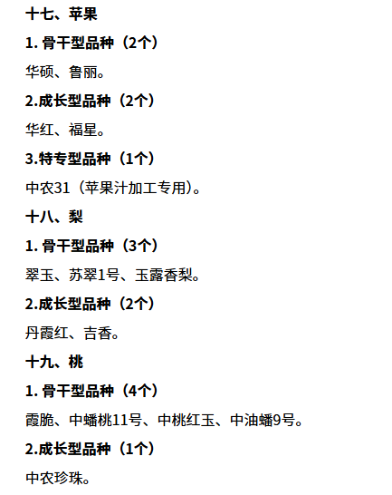 2025年的国家农作物优良品种推广目录聚焦“粮袋子”“油瓶子”“菜篮子”“果盘子”及重要战略农产品,在2023年推广目录涵盖水稻、小麦、玉米、棉花、大豆、马铃薯、油菜、花生、大白菜、结球甘蓝等10种作物基础上,新增了甘薯、谷子、高粱、黄瓜、西瓜、甜瓜、苹果、梨、桃、甘蔗、茶树等11种作物,共计21种作物。本次共推介的农作物优良品种326个,其中苹果、梨、桃果树品种各5个,我校张玉刚教授团队培育的 ‘福星’苹果成功入选。