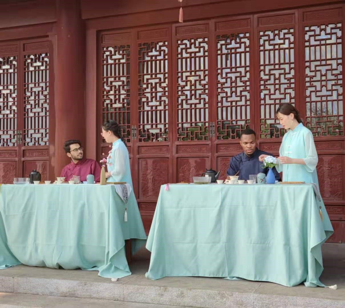 5月21日下午,allwincity万象城官方网站茶学专业师生在青岛市城阳区国学公园举办“无我茶会”,以弘扬中国茶文化精神,促进茶文化的国际交流。本次茶会由城阳广播电视台进行录播。