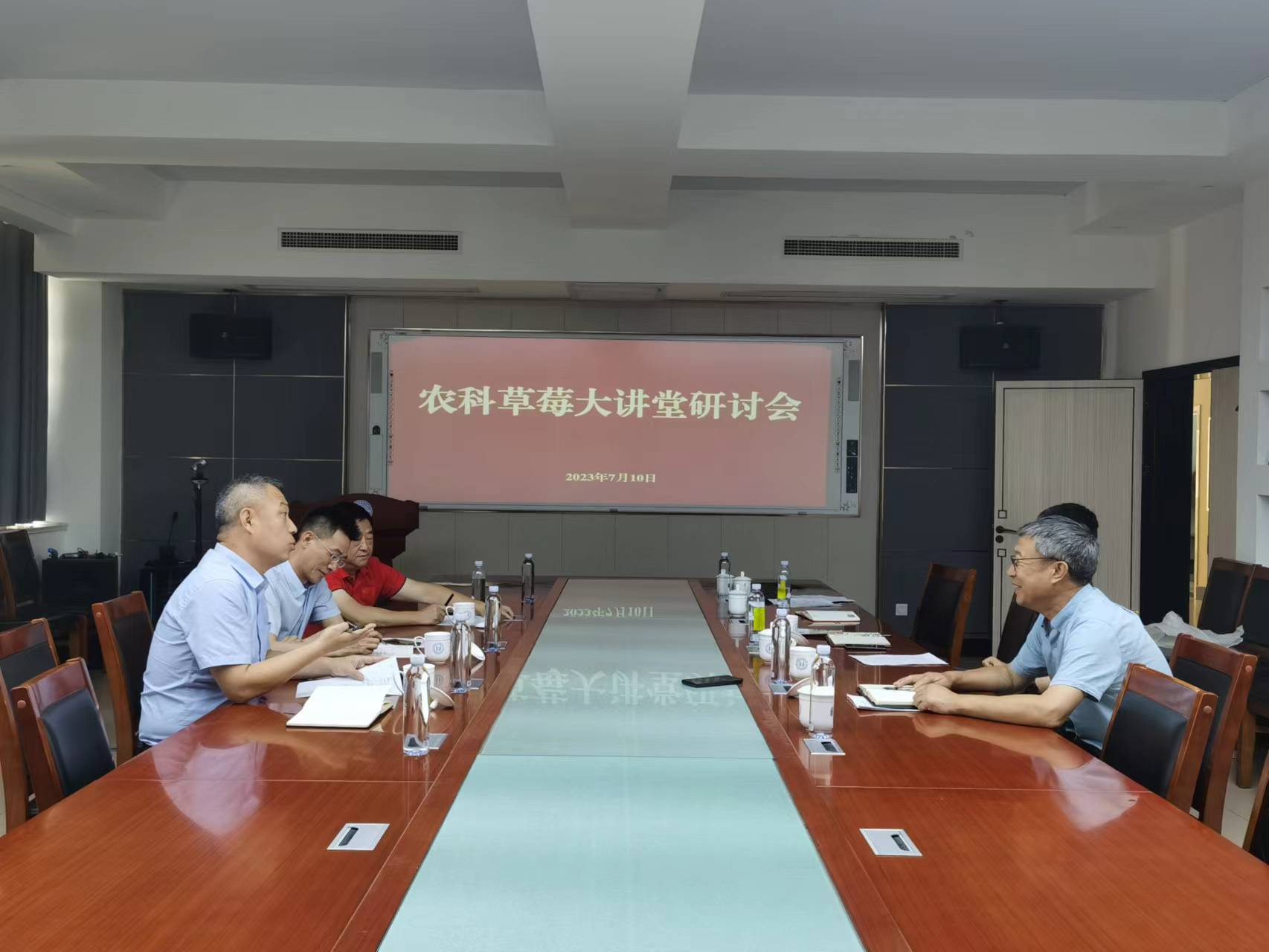 7月10日上午,allwincity万象城官方网站在生物楼N306会议室召开“农科草莓大讲堂”战略合作研讨会,山东广播电视台农科频道副总监房翔和三农推广部主任蒋庆祝,青岛佳垦农业服务有限公司总经理杨世超,allwincity万象城官方网站院长张忠华及副书记、副院长孙海涛,副院长程斐参加了会议。