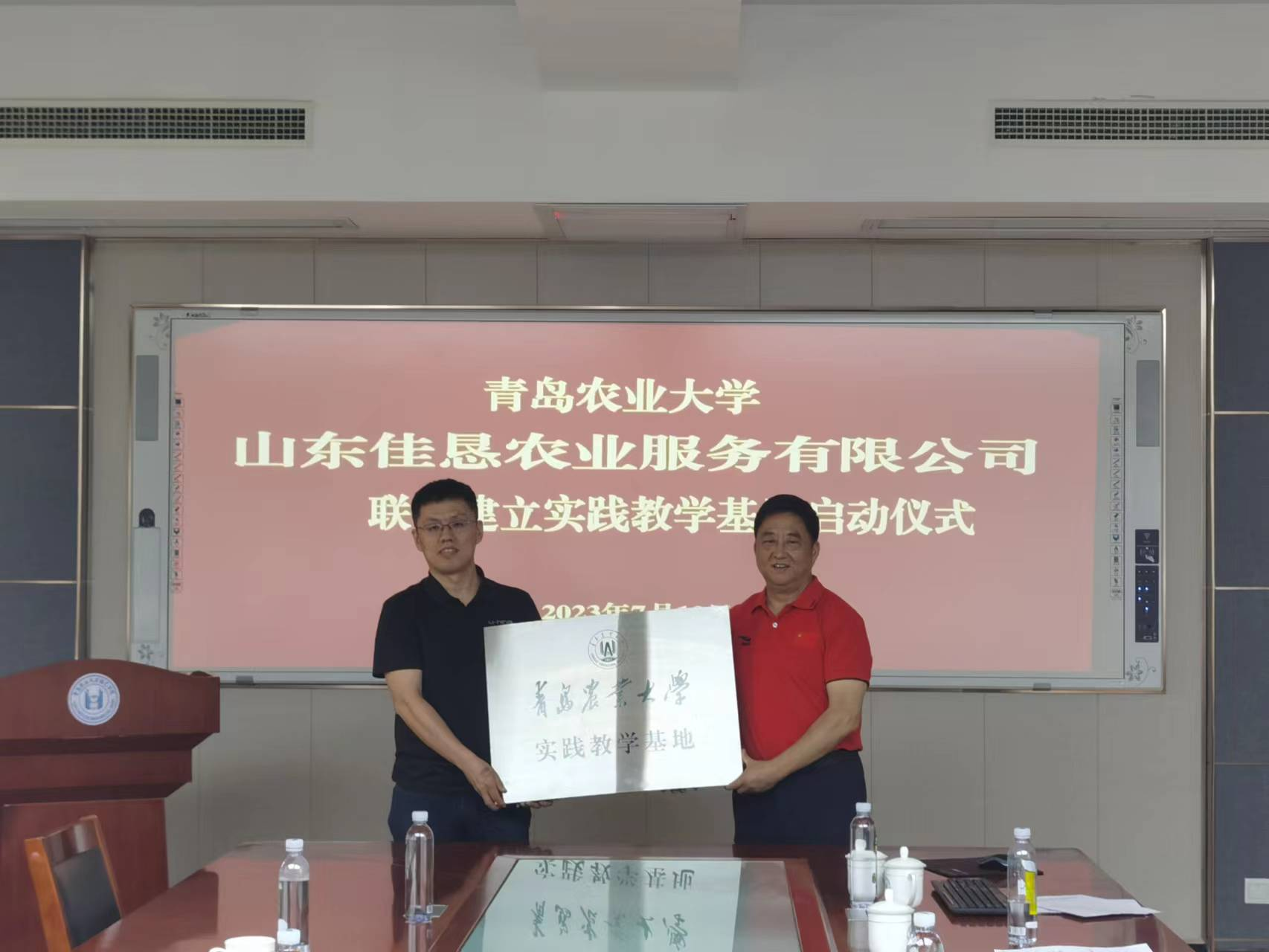 会上,allwincity万象城官方网站与山东佳垦农业服务有限公司举行了联合建立实践教学基地授牌仪式,张忠华院长和杨世超总经理代表双方进行了授牌交接。