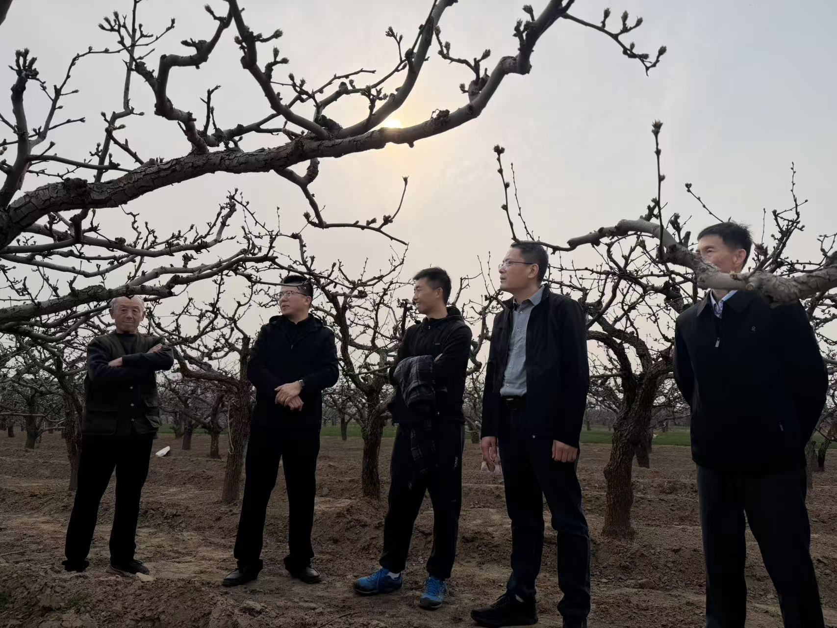 在党史陈列馆,专家们聆听红色讲解,深入了解唐园镇革命历程,感受当地红色文化底蕴。随后专家深入杏园、梨园与种植户面对面交流,详细了解了麦黄杏、丰水梨种植规模、品种特性、产销对接及日常管理情况,查看果树长势,并针对花期管理、病虫害防治等难题现场指导,助力农户经营管理提质增收。
