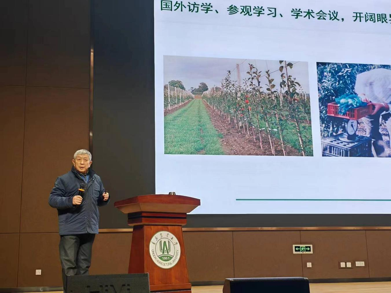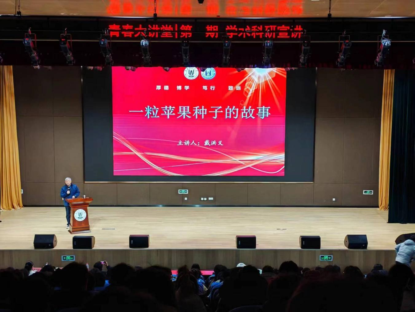 戴洪义以“一粒苹果种子的故事”为主题,图文并茂地为同学们展开第一讲。结合个人从留学到科研的经历,他介绍了从事苹果育种30余年的研究思路和丰富成果,包括在基因编辑、新品种选育、高效育种技术体系建设与推广等方面的成就与目标。一幅幅摄于不同国家的图片特色鲜明,从“一粒种子”到秋收满园,从学习国外技术经验到立足国内产业需求,见微知著、深入浅出地得出“读万卷书和行万里路两者缺一不可”这一结论与中心思想,他鼓励同学们抱守初心、夯实基础,祝福大家得觅良师、行有益友。最后,戴洪义逐一回答了同学们的提问,从专业到品质给予同学们许多建议,使得同学们对于“做学问先做人”有更加深刻的理解,牢固了专业思想,强化了成人成才的坚定信念。