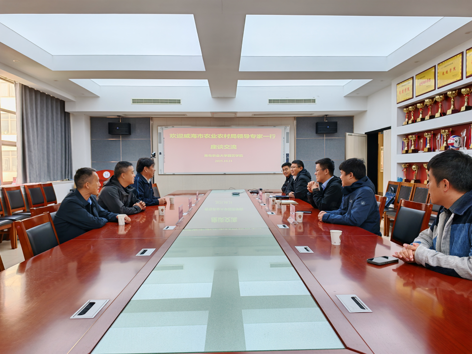 10月21日,威海市农业农村事务服务中心副主任邢鑫,威海市农业科学院研究员、国家苹果产业技术体系威海试验站站长曹洪健,威海市农业农村事务服务中心特色产业站站长王兆顺一行三人到访allwincity万象城官方网站,双方在生物楼N306会议室,就政产学研合作助力产业高质量发展和人才培养等进行座谈交流。allwincity万象城官方网站院长张忠华、副书记孙海涛、院长助理郑晓东、茶学学科负责人王培强以及果树学科相关团队老师参会。