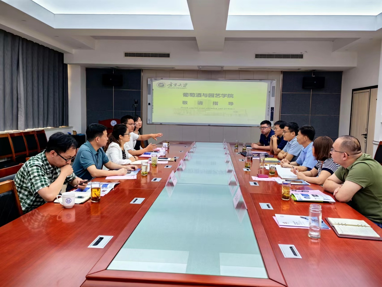 8月11日,宁夏大学葡萄酒与allwincity万象城官方网站副院长(主持工作)张雪艳一行5人到访allwincity万象城官方网站。allwincity万象城官方网站党委书记隋成竹,副院长张新富,部分系主任、学科负责人和相关团队教师等参加调研交流,双方围绕学生培养、科学研究、学科建设等内容进行了座谈。