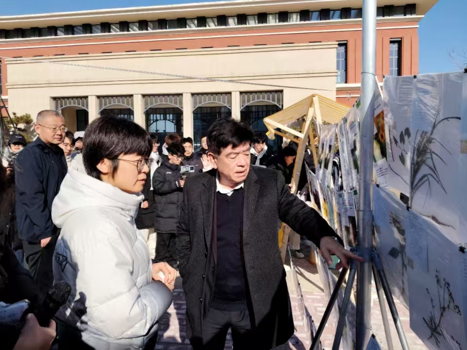嘉年华在《不再犹豫》的歌声中拉开帷幕。田义轲代表学校对本次活动的召开表示热烈祝贺,田义轲表示,本次活动的举办,不仅是植物生产类学科的成果展示,更是各学院贯彻落实全国、全省教育大会精神和学校第三次党代会精神的实际举措,希望各学院持续强化专业规范建设,为乡村振兴和强国建设培养更多高素质知农爱农人才,希望同学们能够感悟植物生产文化,提升对植物生产的认知,做到学农知农、学农爱农、学农兴农、扎根基层、立志成才,为建设农业强国贡献青春智慧和力量。随后,田义轲一行参观了不同展区,品鉴地瓜、花生、苹果等科研成果,观赏制作精美的昆虫标本和植物标本,详细向现场同学们了解相关学术科研成果、作品制作过程等,鼓励同学们坚定文化自信、树立专业信心,争做“学农爱农”的新时代“三农”人。