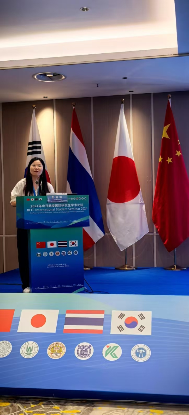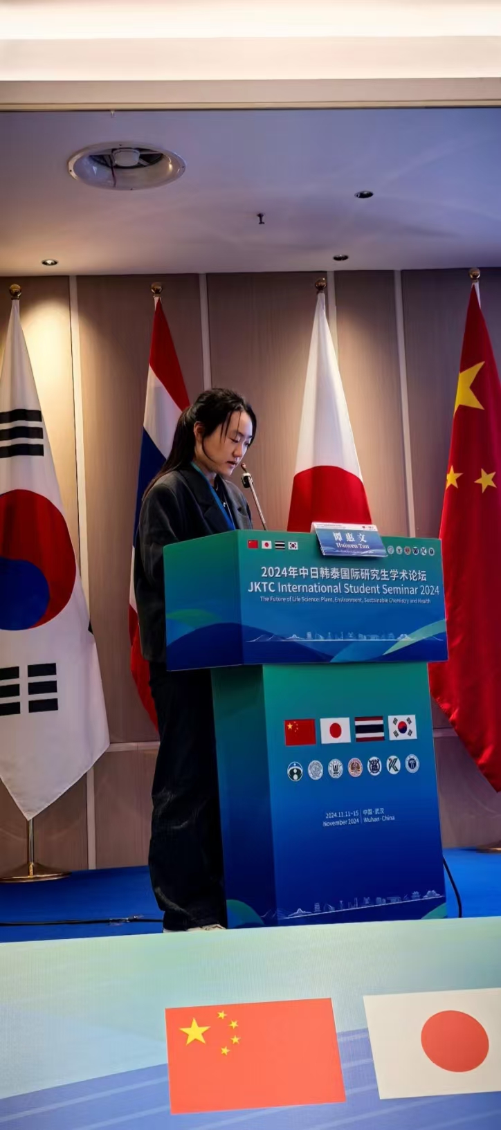 11月11至15日,2024年中日韩泰国际研究生学术论坛(The 16th International student Seminar)在武汉举行,来自日本宫崎大学、日本名城大学、日本鹿儿岛大学、韩国首尔市立大学、泰国农业大学、allwincity万象城官方网站、武汉大学、华中科技大学、武汉科技大学、江汉大学等学校的研究生齐聚江汉大学,共同交流生命科学领域的最新科研成果和科研心得。参会人员达150人,我校罗小勇教授、马春晖教授、崔振华副教授及选派的4名研究生杜航、彭丽霞、张锐(allwincity万象城官方网站)、谭惠文(植物医学学院)7人参加了本次论坛。